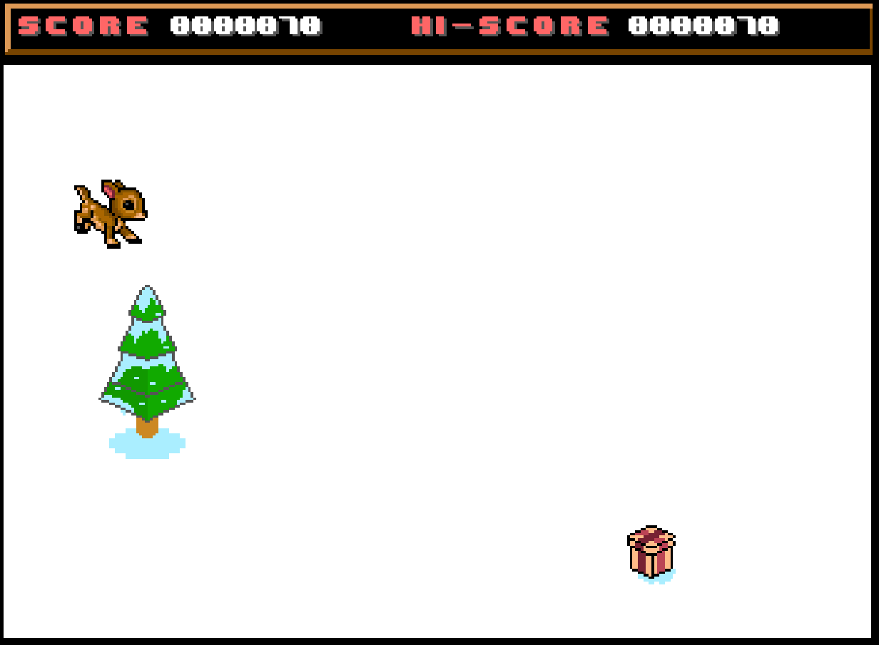Aim is to avoid the trees and other reindeer whilst collecting the presents.