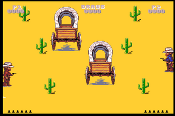 Be careful when shooting at the cactus and wagon as your bullet will rebound back towards you.