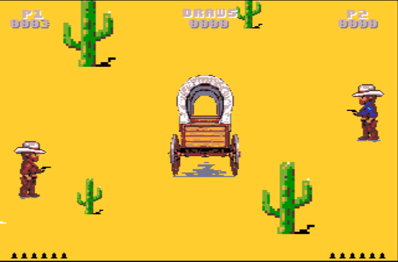 When I was young I loved playing simple 1 screen arcade games like Asteroids, Centipede and one of the first games I remember playing was Boot Hill - a 2 player cowboy shoot out. This is a very rough and ready take on that game made during the Xmas holiday 2025 for some simple family fun.